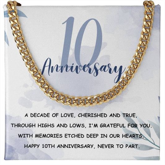 Ten Year Anniversary | 10 Year Anniversary Gift - Cuban Link Chain | Gift for Him | Wedding Anniversary